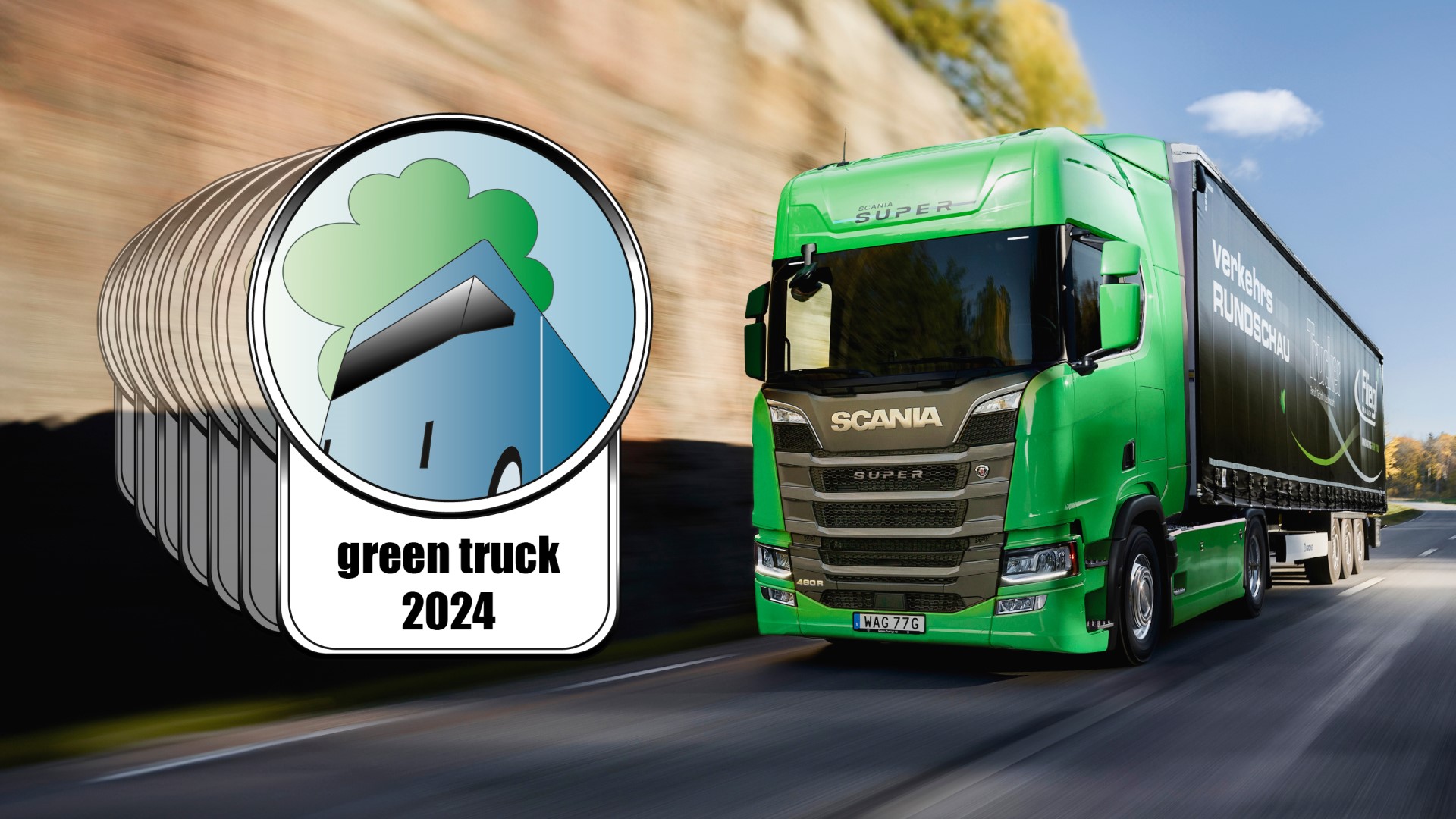 Jedes Jahr werden alle Hersteller von schweren Lkw in Europa zum renommierten „Green Truck“-Vergleichstest eingeladen. Der Green Truck Award wird von den deutschen Fachzeitschriften Trucker und VerkehrsRundschau für die verkehrseffizienteste Fernverkehrs-Sattelzugmaschine verliehen. Scania konnte sich den begehrten 1. Platz bereits zum neunten Mal holen.
