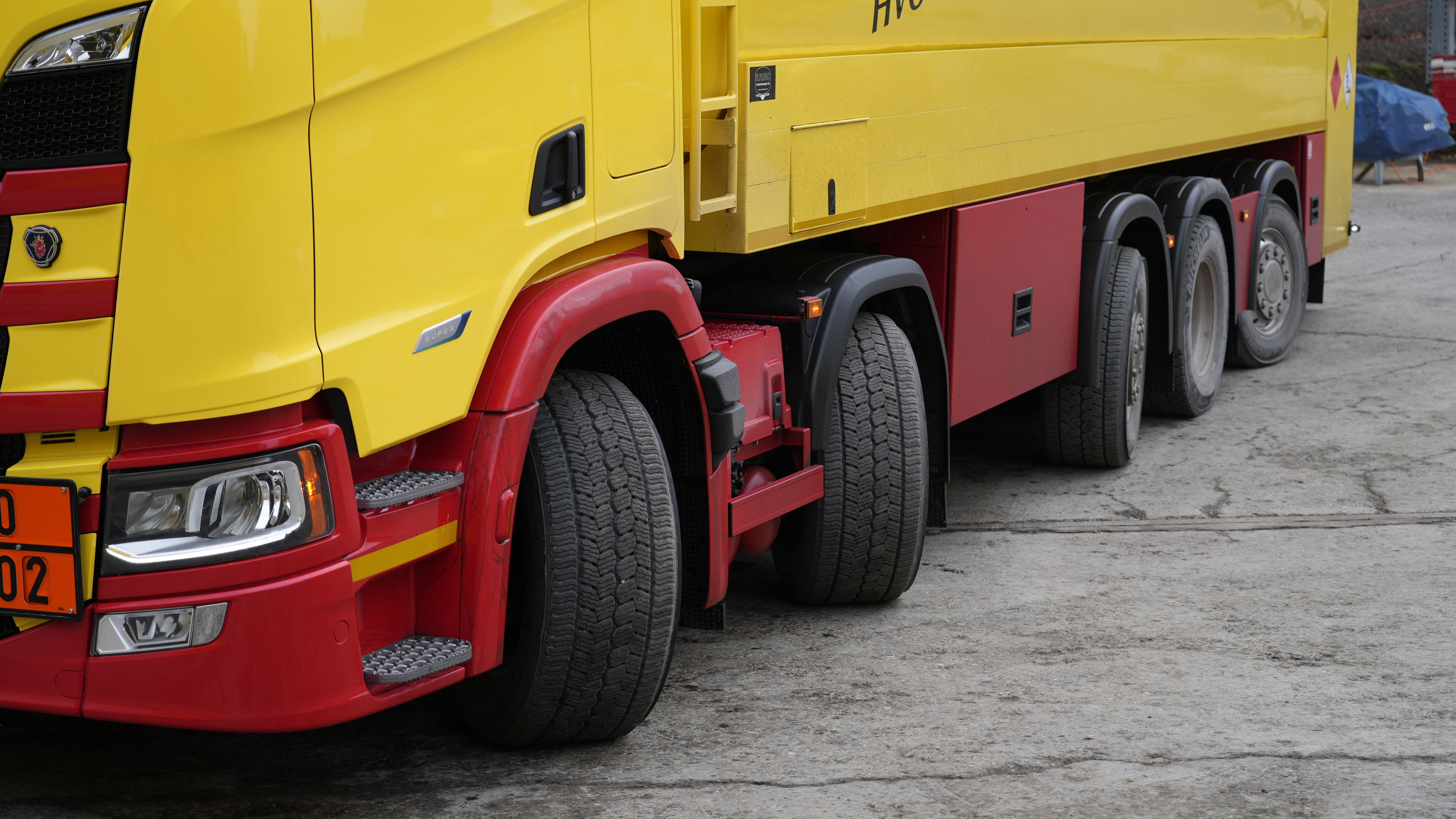 Erstmals hat Scania CV AB ein fünfachsiges Fahrgestell mit nur einer angetriebenen Hinterachse, dafür mit vier lenkbaren, davon zwei liftbaren Achsen gebaut. Die Gebr. Staub Transporte AG aus Hirzel ist die glückliche Besitzerin und freut sich über den Nutzlastgewinn bei Ihrem neuesten Tankwagen mit der 10x2*/8 Radformel.