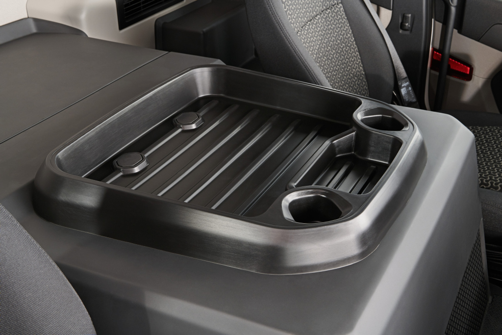 Skab en funktionel og praktisk arbejdsplads med vinyl. Beklæd sæderne med sort vinyl og lastbilens vægpaneler og loftpanel med gråmønstret vinyl for overflader, der er både smudsafvisende og nemme at rengøre.