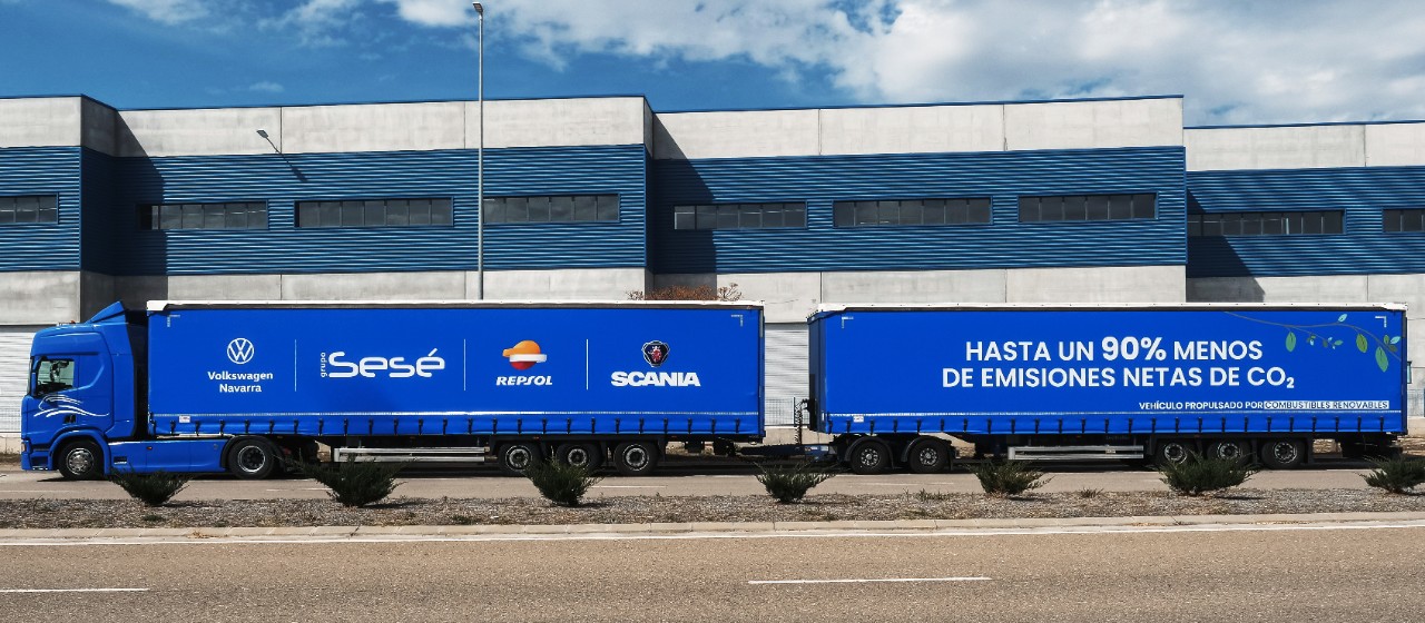 Industrial logistics and supply chain management company Sesé and Scania have put the first Spanish truck with a Duo Trailer concept, powered by renewable fuel into circulation. The launch of the perhaps most sustainable long-distance heavy road vehicle in Southern Europe is done in collaboration with Spanish energy supplier Repsol and Volkswagen Navarra.