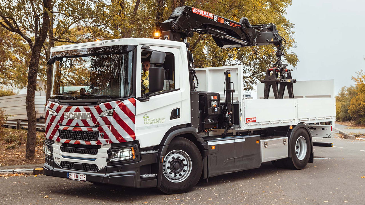 Avec la livraison de ce Scania 23P entièrement électrique, Bruxelles Mobilité franchit une première étape dans l’électrification de sa flotte de poids lourds, après avoir déjà électrifié ses véhicules utilitaires légers. Le camion électrique a été équipé par Appelmans d’une benne fixe et d’une petite grue Hiab afin de servir à l’entretien des voiries régionales de Bruxelles. « La configuration retenue a été pensée avant tout pour la pose, l’entretien et le remplacement de la signalisation routière, ainsi que pour le déplacement d’objets lourds comme des bacs à fleurs lors de réaménagements temporaires », précise Ken Vansumere, responsable de la flotte utilitaire au sein de la Direction de l’Entretien de Bruxelles Mobilité.
