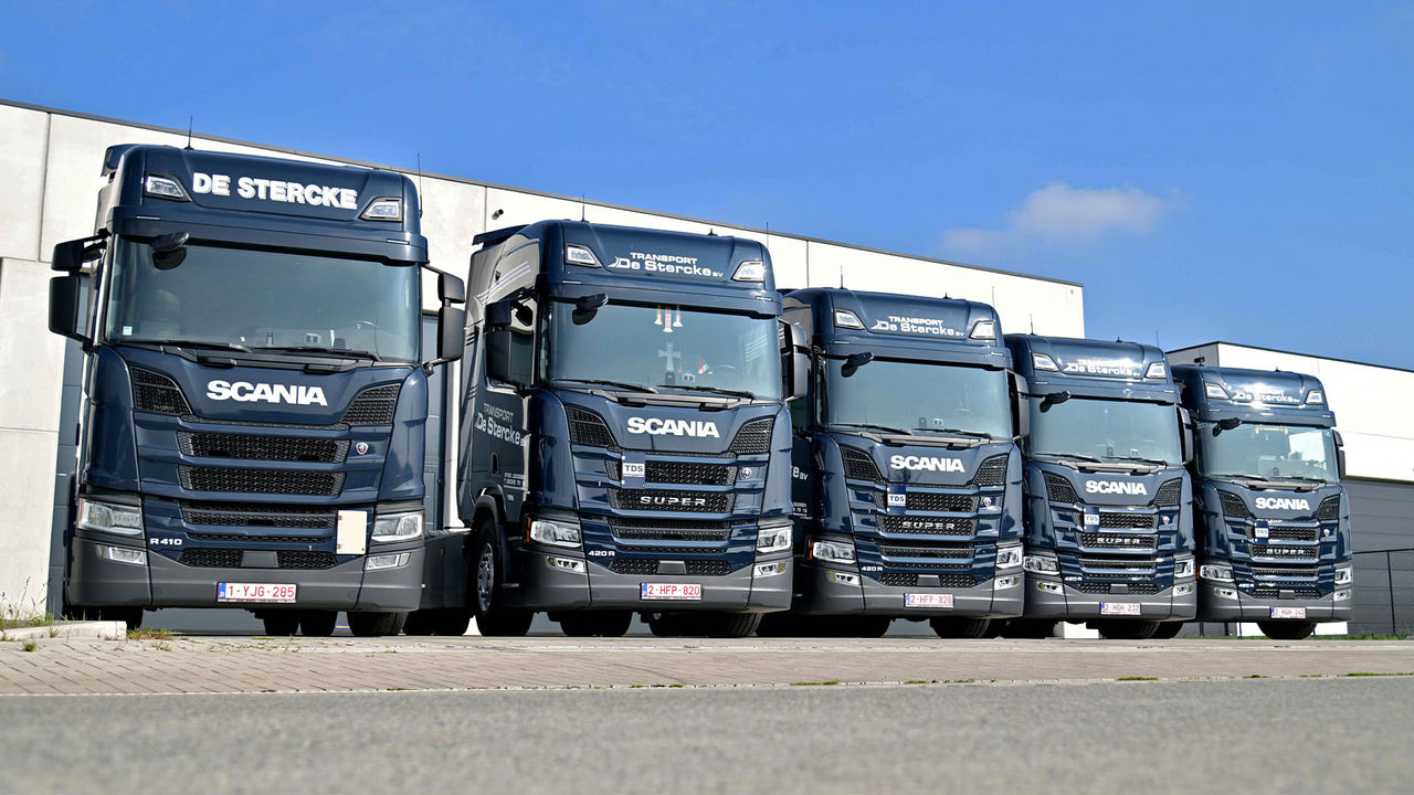 Avec ces cinq nouveaux Scania R420 Super, la flotte de Transport De Stercke est désormais composée exclusivement de véhicules de la marque scandinave. « Nous sommes clients de Scania depuis longtemps et toujours satisfaits de la qualité, du service et de la consommation. Cela se confirme encore avec la nouvelle chaîne cinématique Super : nos chauffeurs les plus économes atteignent désormais une consommation remarquablement basse de 22 à 23 litres aux 100 km. Le choix de Scania ne doit donc rien au hasard », souligne Benny De Stercke, qui a lui-même été chauffeur pour l’entreprise jusqu’il y a une dizaine d’années.